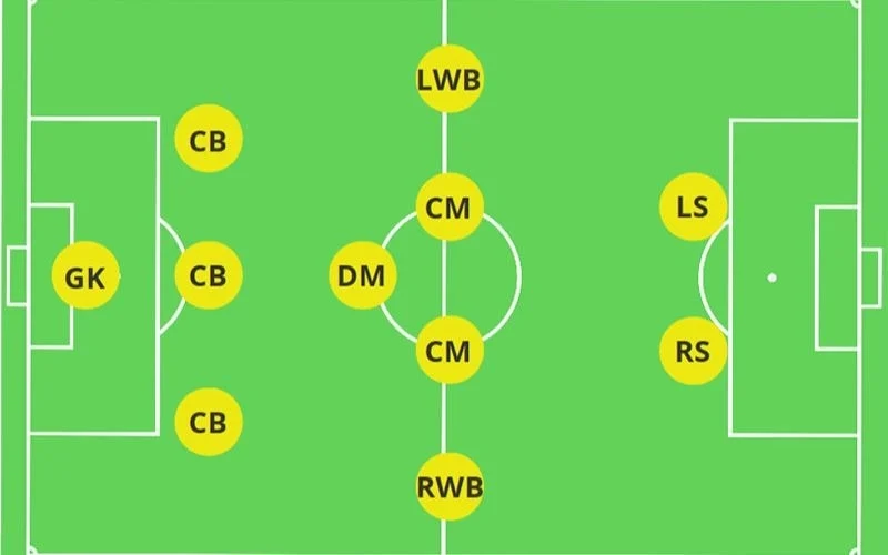 Sơ đồ 3-5-2 tập trung vào kiểm soát khu vực trung tuyến với số lượng tiền vệ đông đảo. Hai cầu thủ chạy cánh đóng vai trò quan trọng trong cả tấn công lẫn phòng ngự, giúp đội bóng chuyển trạng thái linh hoạt.